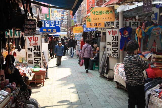 Off to Gwangbokdong, a market of many small shops crowded together along narrow side streets, each open front store specializes in one item or a bunch of souvenirs! And in the middle of a couple of streets you mind the mamma-sans cooking – such a sight.